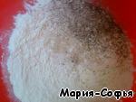 В большую емкость всыпать 200 гр муки, дрожжи, соль и перец, все перемешать.