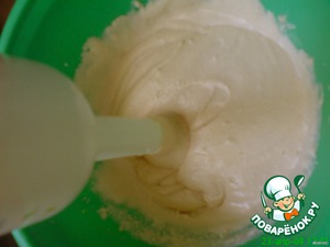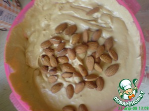 Взбить творог + сливочное масло + сметану + вареную сгущенку до получения кремообразной массы, и, добавив миндаль, перемешать.