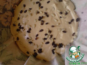 Взять пасочницу или, как в моем случае, дуршлаг, застелить плотной тканью и выложить очень аккуратно сначала 1-й слой (пересыпала семечками в шоколаде), затем 2-й слой, и 3-й слой пасхи.