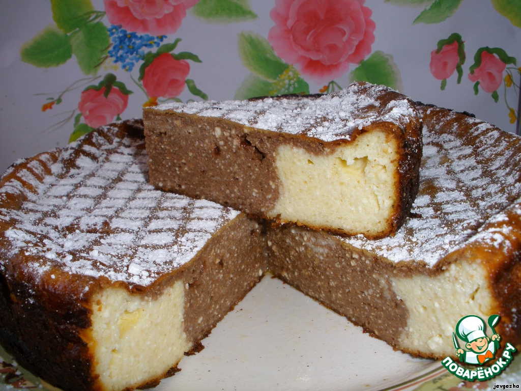 Запеканка с добавлением какао или растопленного шоколада. Приятного вкуса. Прекрасно режется на кусочки желаемой формы.