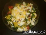 Вареное яйцо режем (мелко или крупно, как нравится); я всегда измельчаю, и кладем сверху на салат, не перемешиваем. Можно подавать к столу.