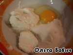 Смешать сметану, сахар, соду (можно разрыхлитель теста - 0,5 пакетика), яйцо.
