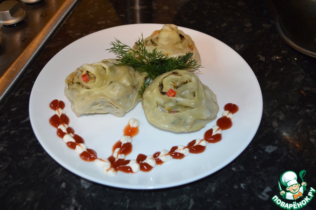 Здравствуйте! Хочу поделиться с вами вот такими симпатиШными и вкусными мантами. Может я и не оригинальна, не судите строго... Уж очень захотелось поделиться :rose: