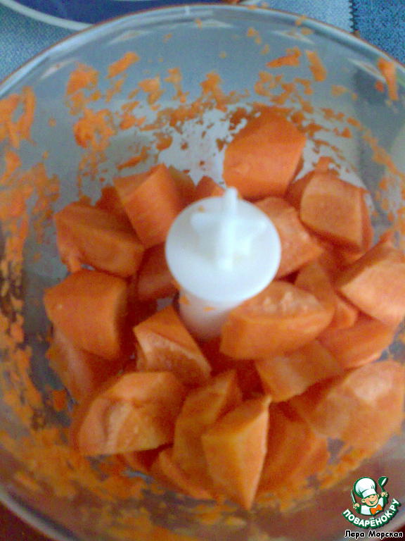 1. Люблю, когда хорошо чувствуется морковь. Поэтому мельчу ее в блендере, но можно и на крупной терке.