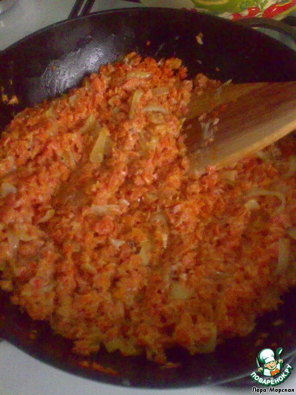3. Жарим на сковородке лук и морковку (желательно с закрытой крышкой)