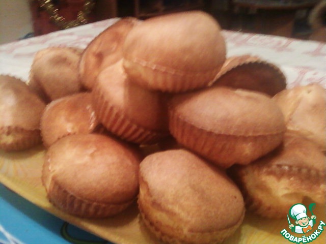Тесто разлить по формам для маффинов, заполняя до половинки, так как тесто о-о-о-о-чень сильно поднимется...
