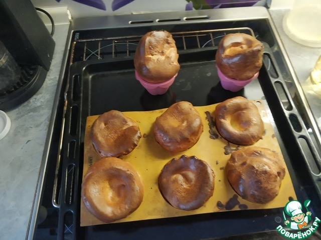 подают горячими, формы должны быть горячими и масло растительное наливают в формы во время нагревания форм