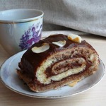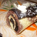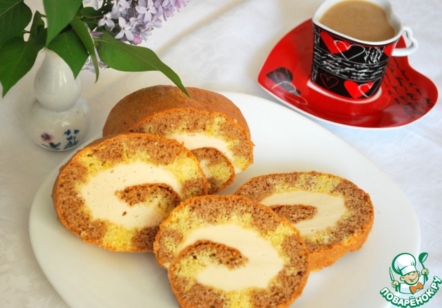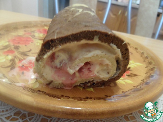 Думаю след. раз резать бисквит коржаим и тортиком подавать. ЧЁт не ладится у меня с рулетами