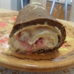 На пласт намазать крем, свернуть рулетом (он не ломается), сверху можно смазать кремом (по желанию, опять же).