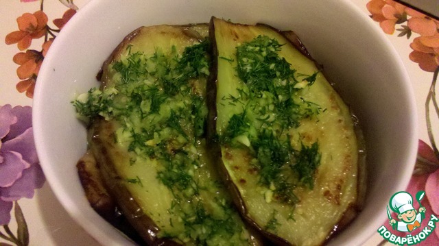 Выложить баклажаны на блюдо, полить соусом, накрыть пленкой и поставить минимум на 3 часа в холодильник.
