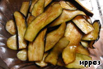 Нарезать баклажаны тонкими пластинками и посыпать солью, оставить на 30 минут.