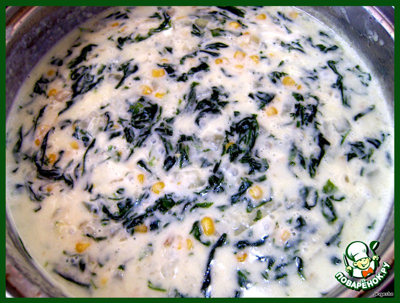 Прекрасное блюдо со шпинатом, сыром и кукурузой.