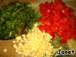 Нарезать сыр и помидоры кубиками, салат - полосками.