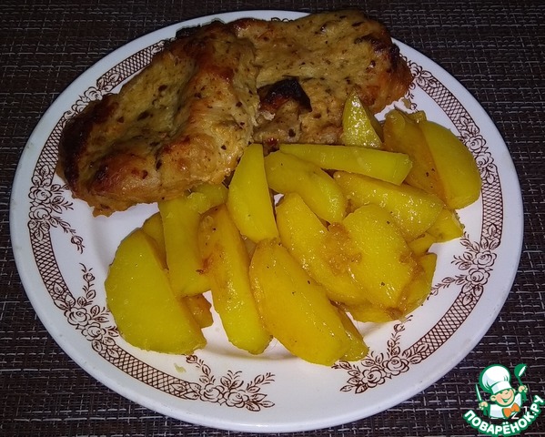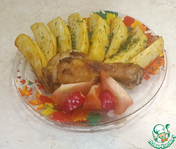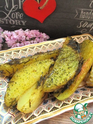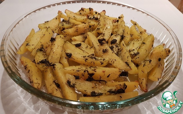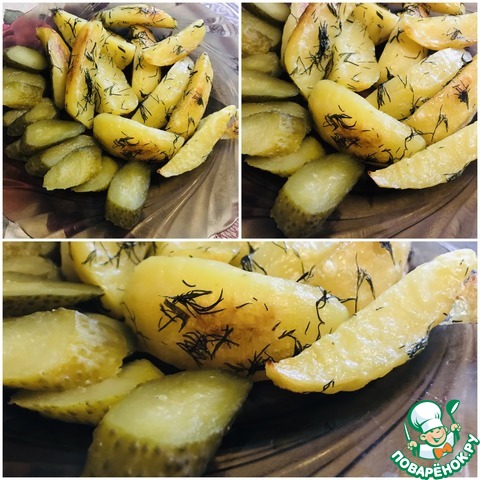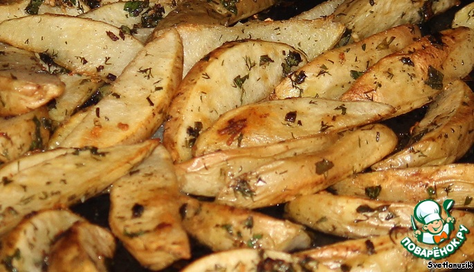 1. Картофель хорошо промыть (очищать не надо), нарезать вдоль на восемь долек (разрезать на половинки, затем на четвертинки и т.д.).