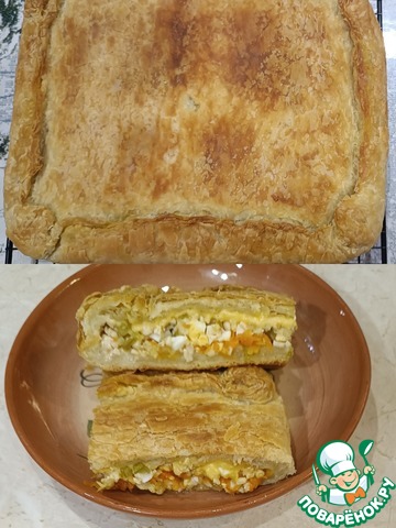 Подрумяниваем пирог в духовке около 20 минут до румяной корочки. Температура, думаю, около 200 градусов. Остужаем и кушаем.