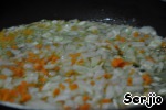 Режем мелким кубиком морковь и лук и обжариваем все это на масле до готовности овощей (5 мин.)