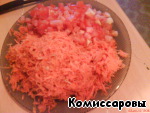 Трем на мелкой терке морковь, смешиваем с мелко порезанным помидором.