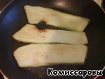 Цукини вымыть, порезать вдоль. Обжарить и посолить с двух сторон.