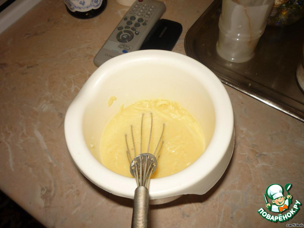 К слегка взбитым яйцам добавить тертый на терке сыр. Перемешать.