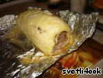 Захотелось что-то необычное приготовить, пролистала пару кулинарных книг - и вот выбрала такой рецепт. Тем более, повод приготовить вкусный ужин у меня был - сегодня моему сыночку исполнилось 3 месяца) Рулет получился очень оригинальным на вкус!