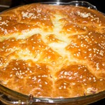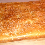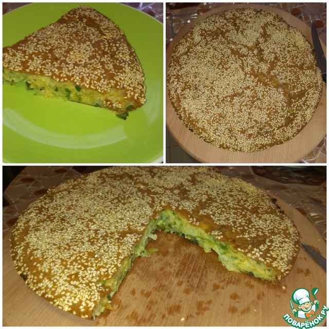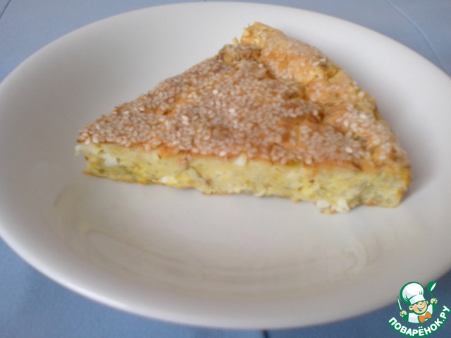 Залить тестом и посыпать сверху кунжутом.