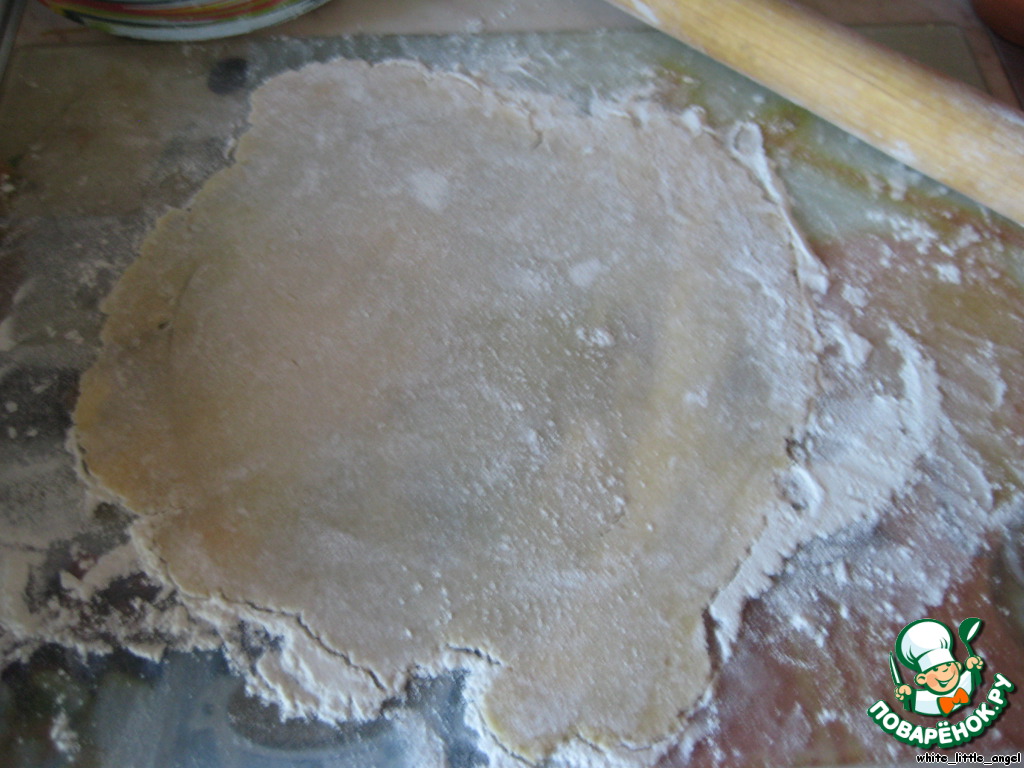 Вернёмся к тесту. Добавим в остывшую (можно тёплую) смесь муку и вымесим тесто. Разделим его на 12 частей и раскатаем каждую тонким слоем размером чуть больше тарелки.