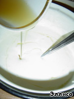 Желатин растворяем в небольшом количестве горячей воды и добавляем в сметанно-творожную массу.