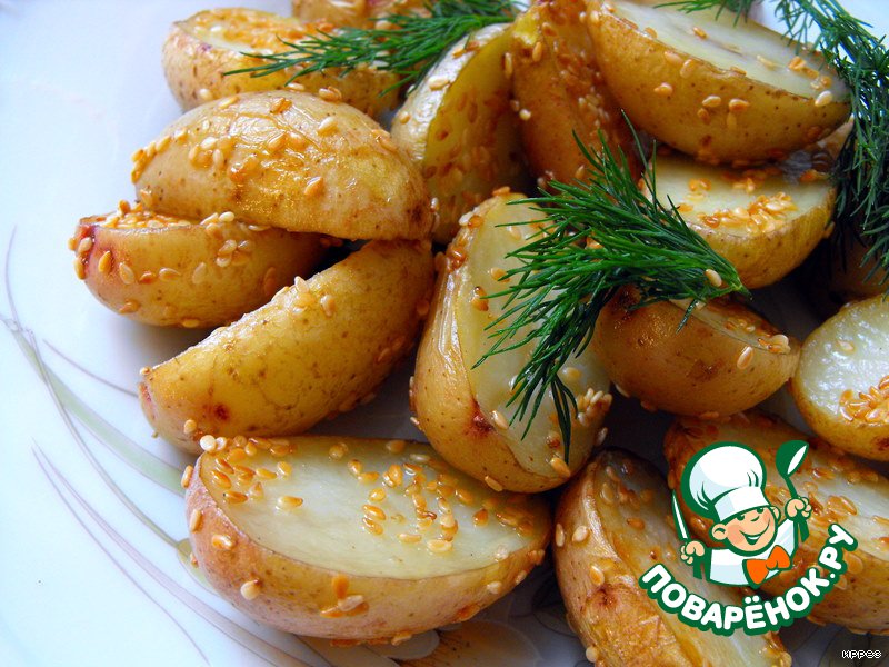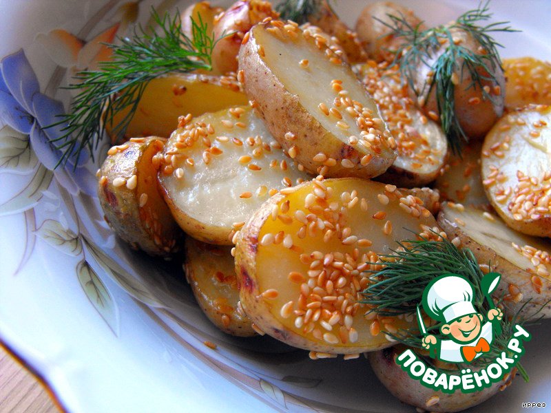 Рецепт «Молодой картофель с кунжутом в сметанном соусе»: