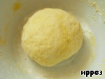 Всыпать муку, смешанную с разрыхлителем, добавить масло и замесить тесто. -