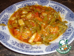 Попробуйте фасоль спустя 40 мин., как только вы почувствуете, что фасоль почти готова, сдвиньте чуть крышку и продолжайте тушить ещё 15 мин. Таким образом выпарится лишняя жидкость.