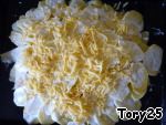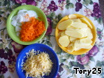 Укладываем на рыбу сначала лук, затем морковь, далее картофель,