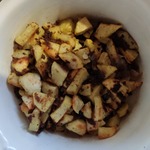 Картофель почистить, промыть и просушить. Если картофель молодой, то можно просто тщательно помыть и нарезать прямо с кожурой. Нарезать. |