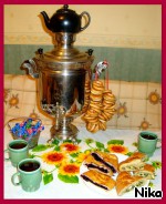 Теперь можно и чайку с пирогами попить. Вспомнить бабушку и дедушку. (Этот самовар я привезла из России. Его купил дед Григорий Иванович, когда мне было три года. Самовар я разыскала у чужих людей и забрала его с собой как памать о дедушке)