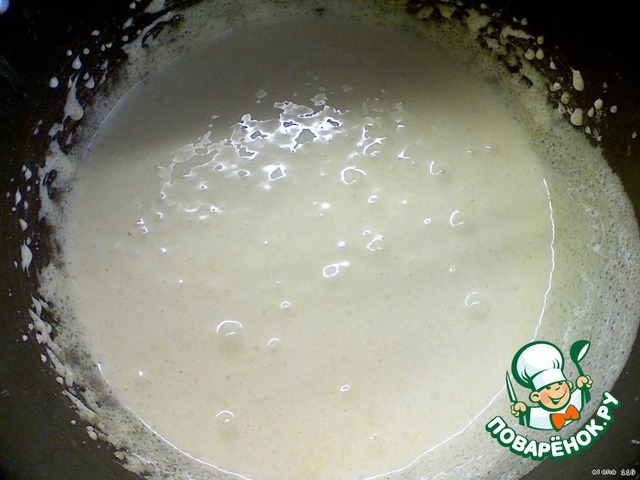 Влить в яичную смесь подготовленные дрожжи, размешать...