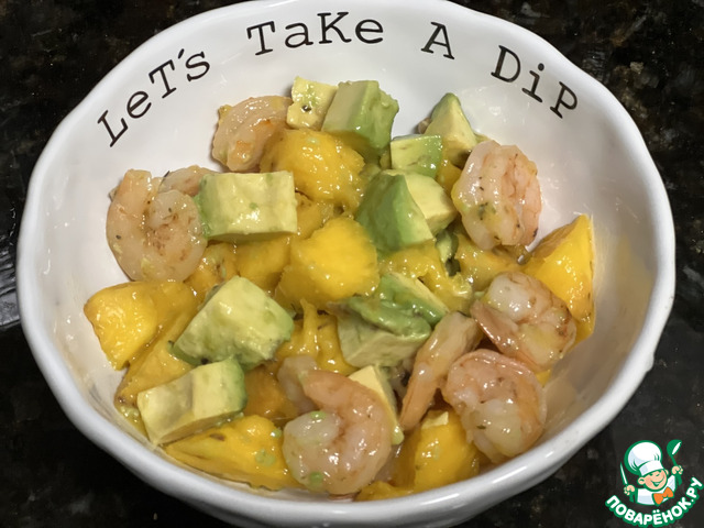 Креветки режем пополам и добавляем к манго и авокадо, заправляем, перемешиваем и наслаждаемся!