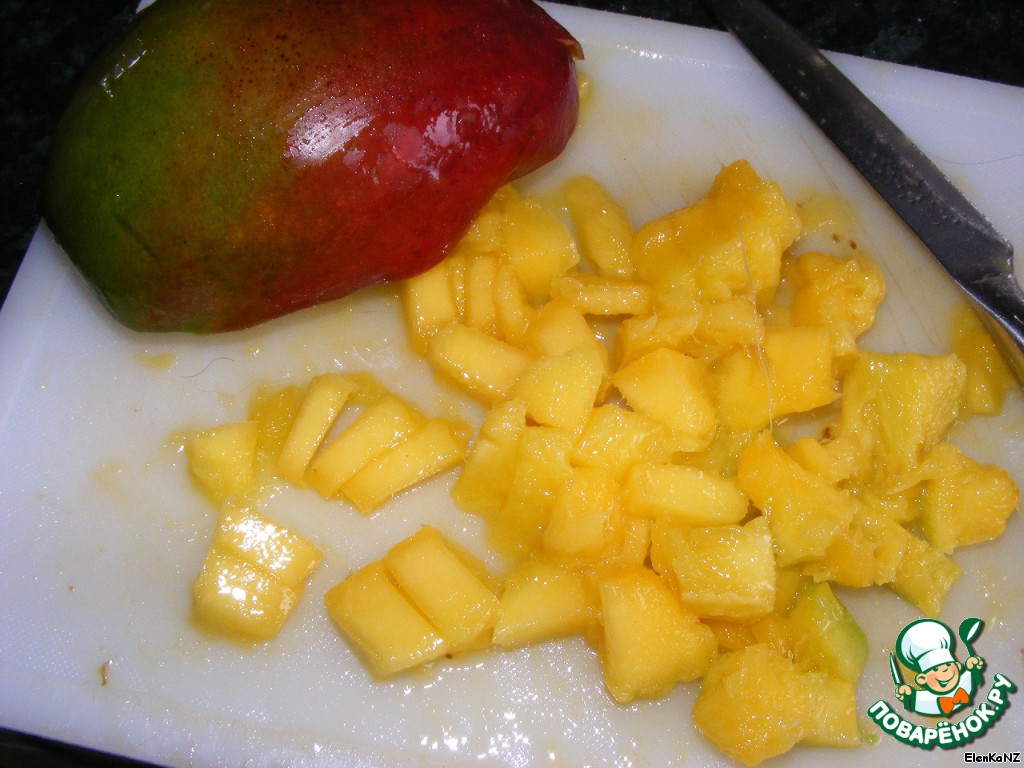 Манго чистим и режем кубиками.