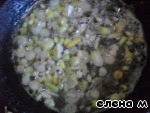 Нарезать лук и чеснок, обжарить до золотистого цвета на растительном масле (масла возьмите побольше, им будем заправлять салат).