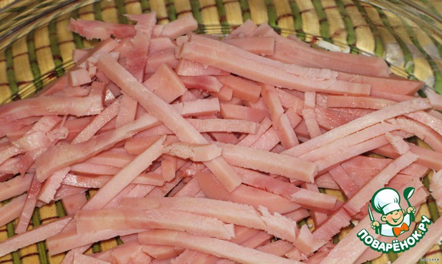 Ветчину нарезать полосками.