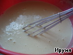 Готовим жидкое тесто для блинов. По любому рецепту. Я делаю следующим образом - яйца взбиваю венчиком, добавляю воду, соль и сахар, взбиваю, и постепенно добавляю муку до состояния достаточно густого теста (консистенция сметаны), мешаю венчиком, постепенно добавляю молоко, доводя тесто до консистенции жидкого блинного теста. Добавляю примерно 1 ст. л. растительного масла, перемешиваю. Тесто готово. Более точных пропорций продуктов дать не могу, т.к. всегда делаю на глаз, да и кол-во муки варьируется (например, от размера яиц). Просто надо приспособится, что очень легко.