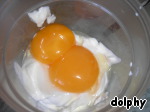 Смешайте сметану с 2 желтками, добавьте немного горячего супа и тщательно перемешайте.