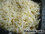 Этим соусом поливаем запеканку. Слои очень хорошо впитывают жидкость. Присыпаем тертым сыром.