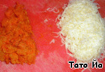 Натираем печеную морковь и сыр на мелкой терке.