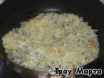 В сковороде разогреть растительное масло и на нем обжарить мелко нарезанный лук.