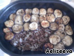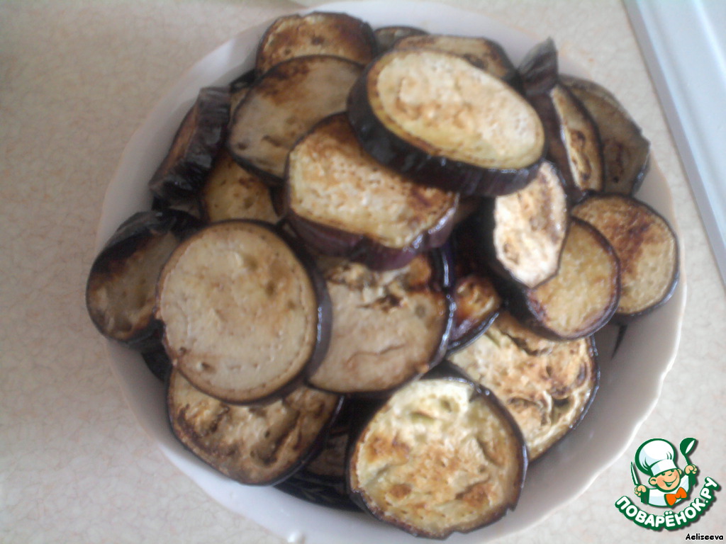 Отдельно обжарить баклажаны, нарезанные кружочками