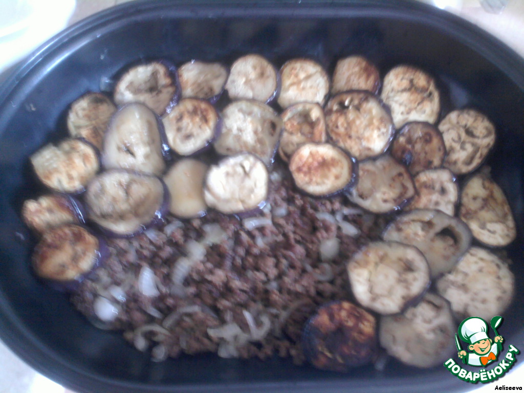 2 слой - баклажаны и пропущенный через чеснокодавку чеснок,