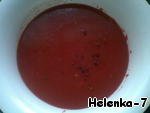 • В томатный сок добавить перец горошком, чеснок и перец жгучий (предварительно смолоть их на мясорубке), сахар, соль, уксус
