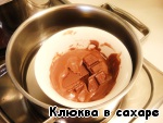 Теперь занимаемся основным ингредиентом — шоколадом. Плитку шоколада растапливаем на водяной бане. ВАЖНО: успех данного мероприятия на 90% будет зависеть от того, какой шоколад вы используете. Постарайтесь выбрать максимально твёрдый шоколад, который не тает в руках от первого же прикосновения. Как правило, это тёмные сорта.