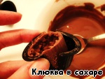 Растопленный шоколад смешиваем с миндальной крошкой и остужаем, чтобы масса чуть-чуть загустела. Теперь каждую формочку обмазываем изнутри шоколадной массой (чем толще будет слой, тем лучше). Как только формочка обмазана - сразу же ставим её в морозильник, а уже после берёмся за следующую.
