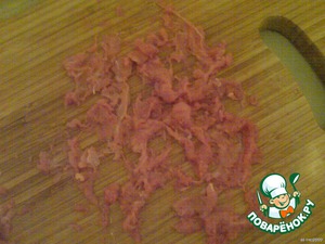 В начинку взяла заготовку для куриных оладушек что осталась:филе мелко порезала, кабачок на терке!