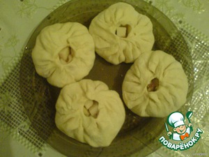 Из теста раскатать кружочки 12-15 см в диаметре и, положив начинку, сформировать такие беляшики. -